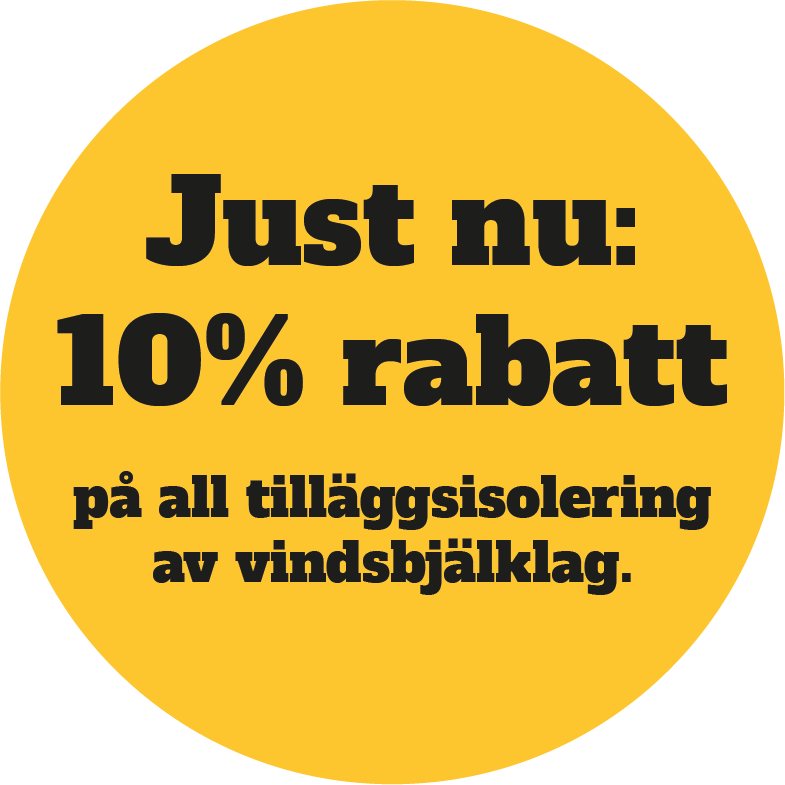 Vi lämnar 10% i rabatt på alla bokningar av tilläggsisolering. I samband med platsbesök inför offert görs även en enklare okulär besiktning av vinden för koll av läckage och eventuella konvektionsskador.